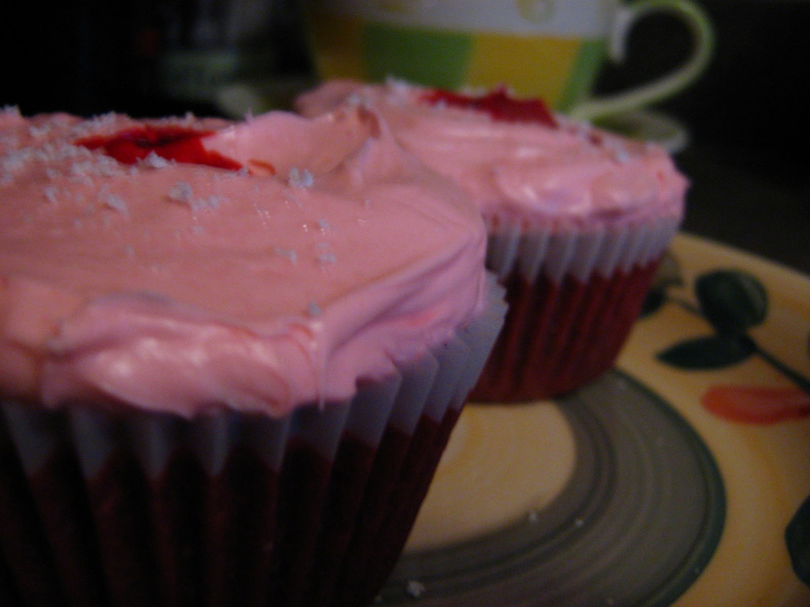 | Valentines Day-themed frosting (these later got a cinnamon heart decoration as well) |